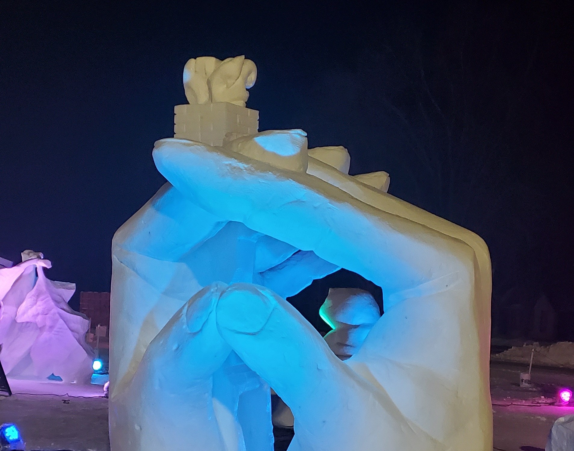 We had two and a half days to complete the sculpture using non-electric tools such as shovels, saws, and floor scrapers. The scale was more demanding than the small block, but working as a team made the experience far more rewarding.