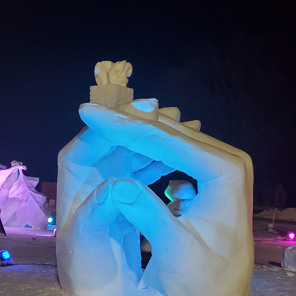 Hand House Snow Sculpture